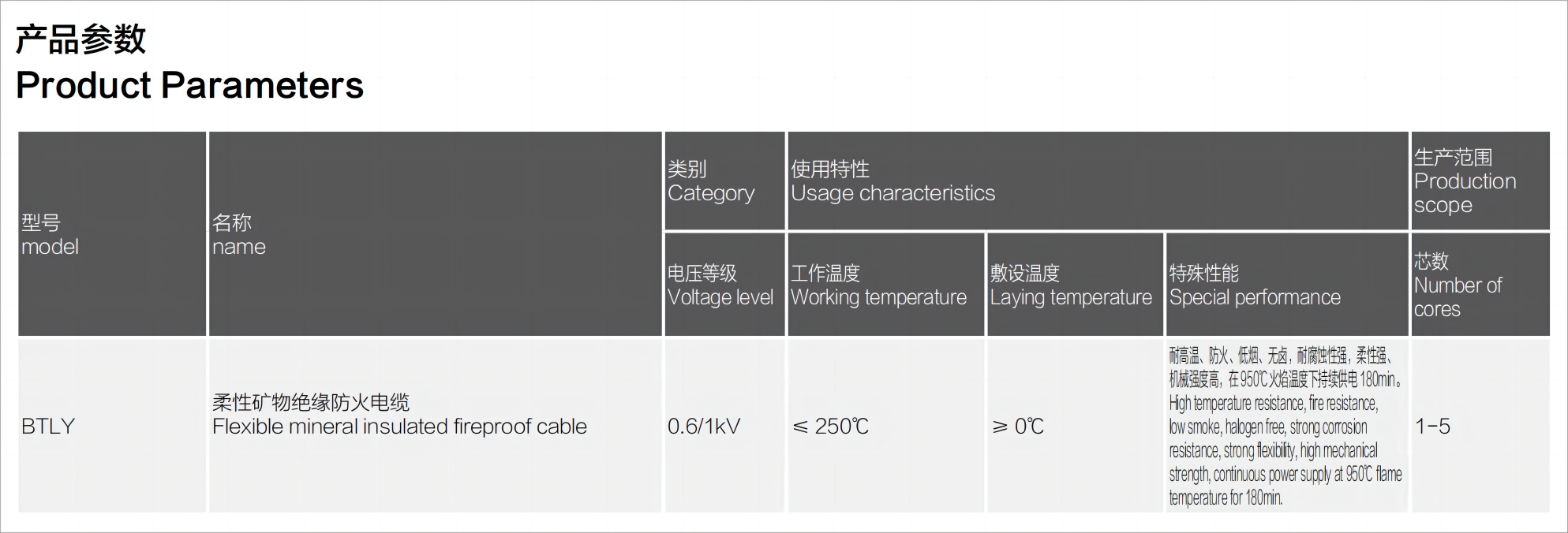 柔性礦物絕緣防火電纜(BTLY)