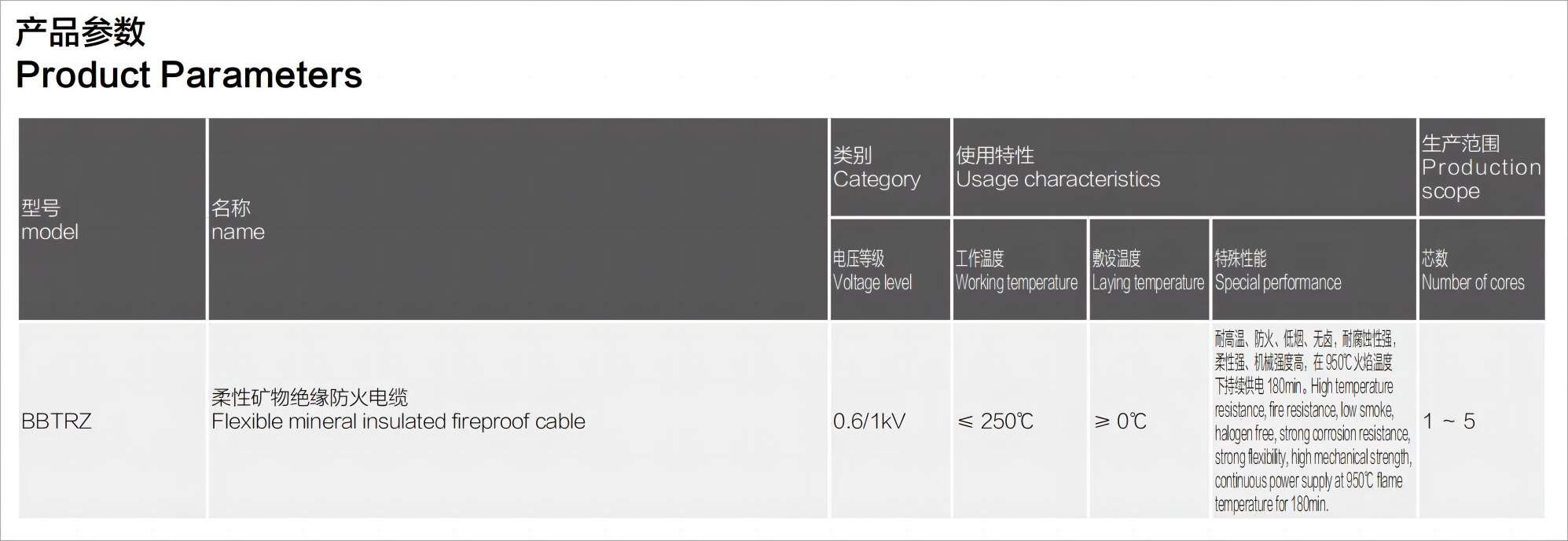 ●本產品特性嚴格遵循我公司企業標準Q/SL09133-2021并滿足英國BS6387標準、國際電工委員會IEC331標準以及我國GB/T12666.6標準的要求。