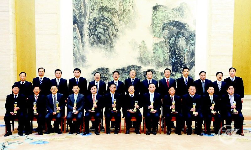 圖為:省領導與2012湖北經濟風云人物合影(后排右七為省委書記李鴻忠、后排右六為省長王國生)