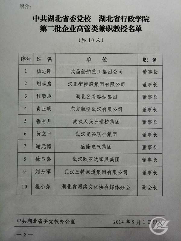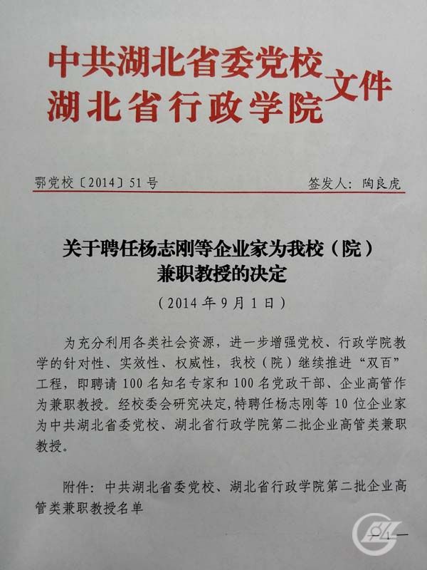 近日,中共湖北省委黨校、湖北省行政學(xué)院聘董事長謝元德為兼職教授。