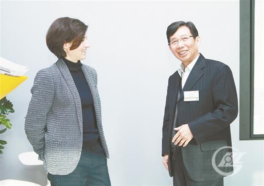 湖北日報(bào)訊 圖為盛隆電氣集團(tuán)董事長謝元德與施耐德法國總裁艾德曼女士在施耐德總部。
