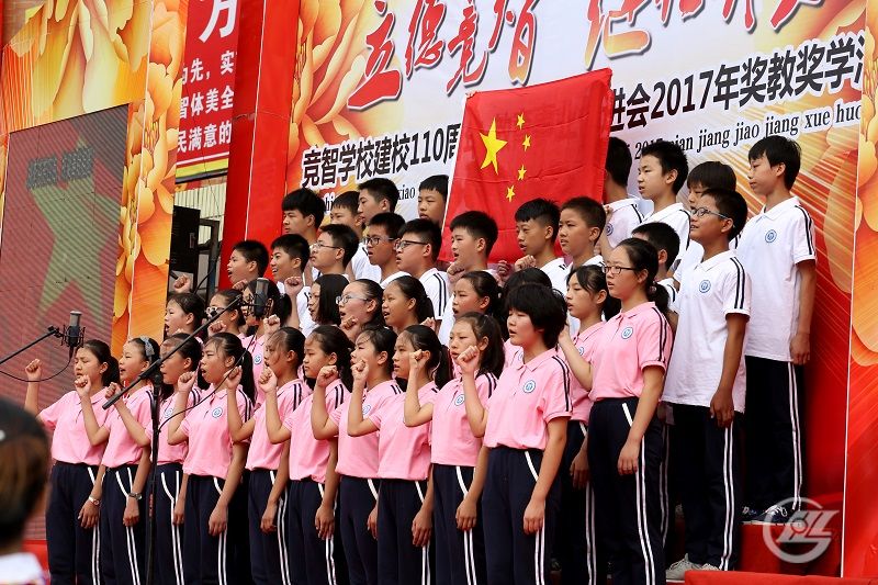 第三段?!苞L河育英才,紅土赤子魄。偉大復(fù)興夢,責(zé)在你和我。啊,競智!競智!桃李芬芳四海,棟梁奉獻(xiàn)祖國!”這是對母校在實現(xiàn)中國夢的征程中,更好地成長,做出更大貢獻(xiàn)的期許,也是必將創(chuàng)造和實現(xiàn)的新的輝煌未來。