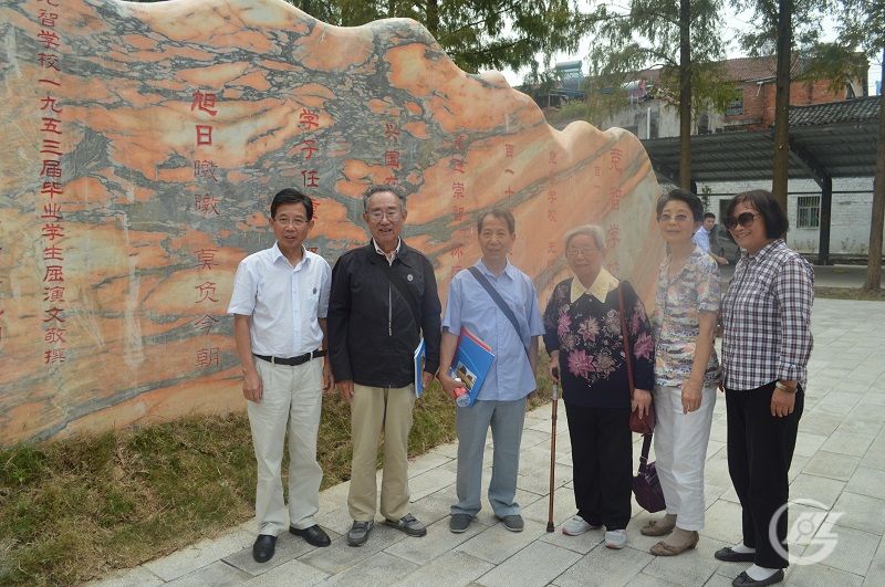 在刻有競智辭的紀(jì)念石前合影