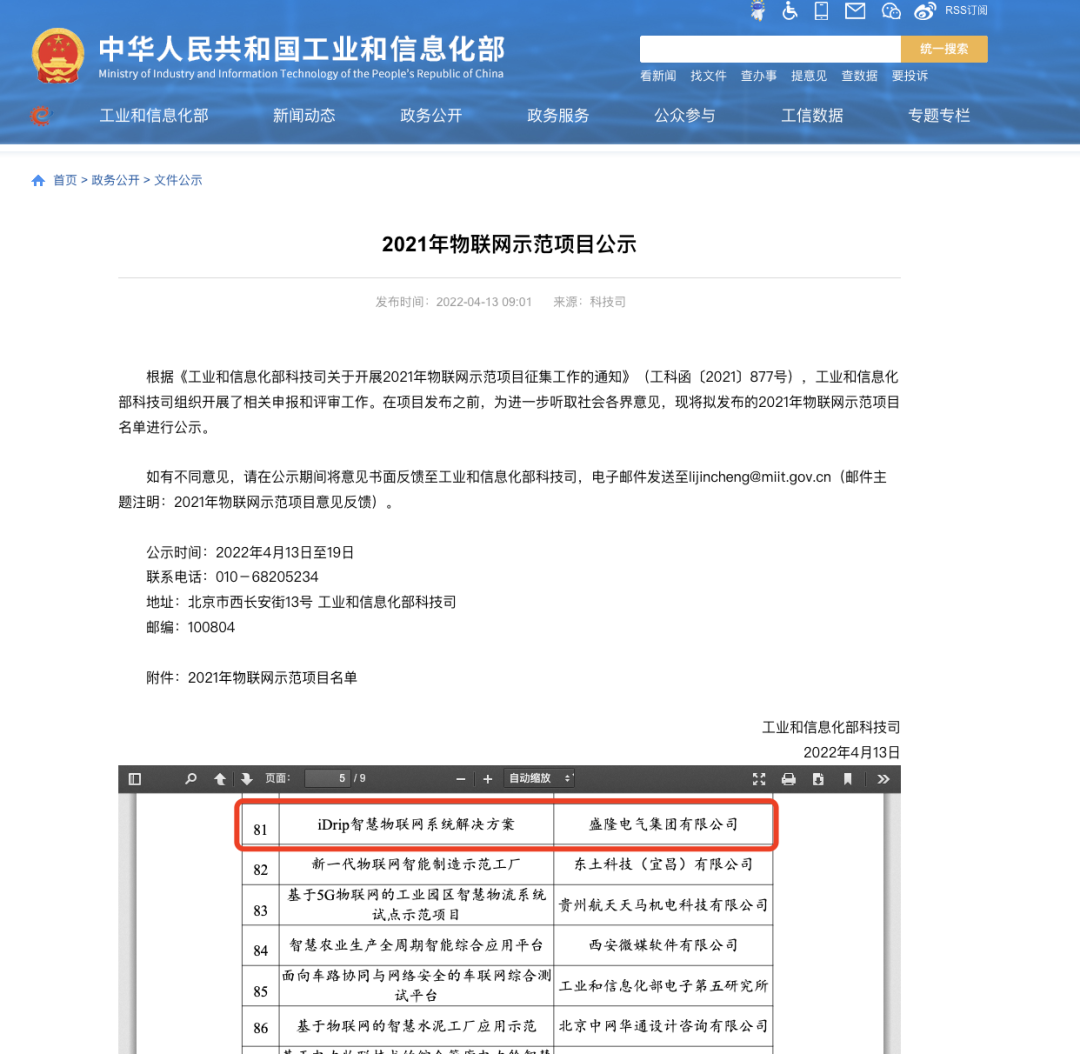 盛隆電氣“iDrip智慧物聯網系統”獲評國家級物聯網示范項目